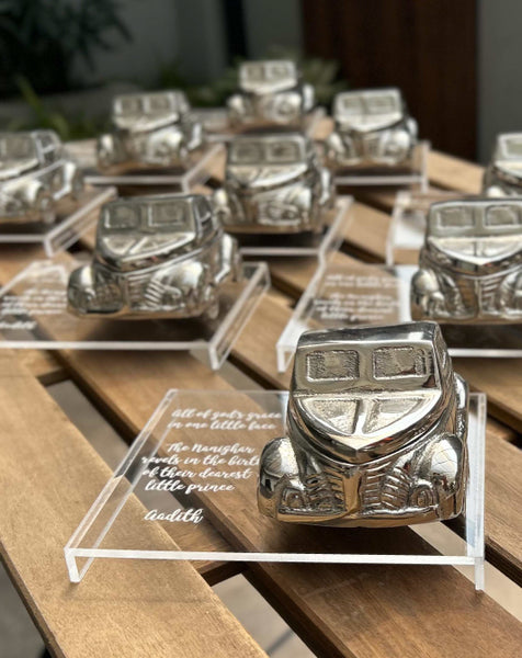 Set the stage for your little one's arrival with our bespoke giveaways. Charming, cheerful and crafted in a splash of playful hues, our thoughtful delights mirror the joys of your baby's big debut.